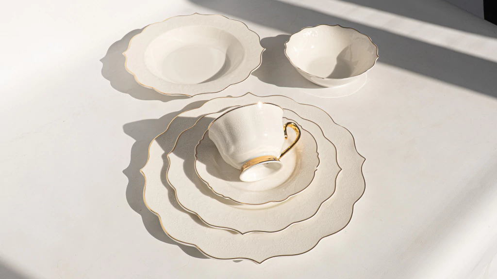 La vajilla “Jazmín” es para mesas luminosas, donde los detalles marcan la diferencia y todo parece en calma. Ideal para bodas, celebraciones o simplemente para quienes disfrutan de la belleza en lo simple.