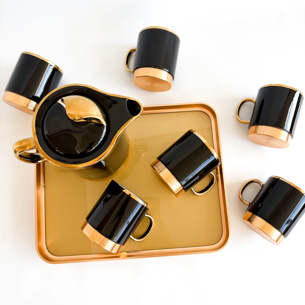 Negro profundo, dorado espejo y una estética que combina lo clásico con lo futurista. El set “Noir Doré” es mucho más que un juego de té o café: es una declaración de estilo.